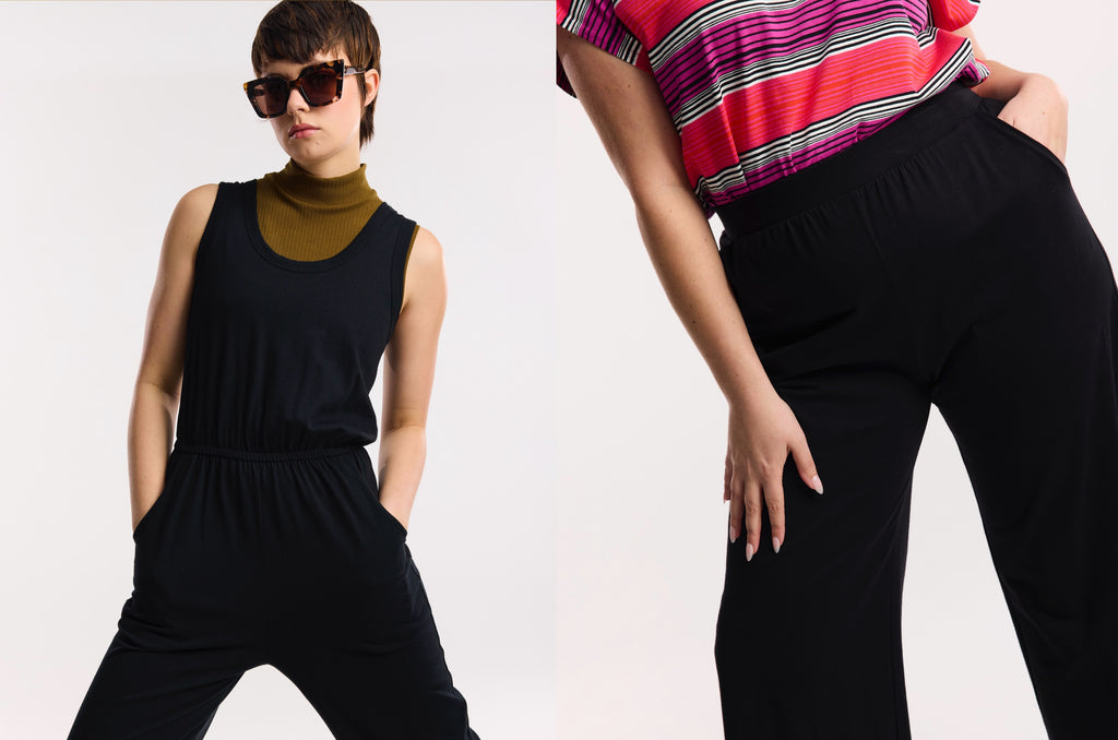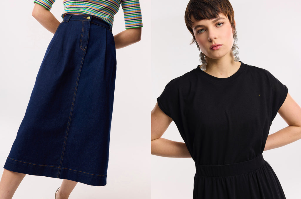 Your fave Traveller Tee, Skirt, and Jumpsuit return in a bold, joyful Nullarbor Sunset stripe!