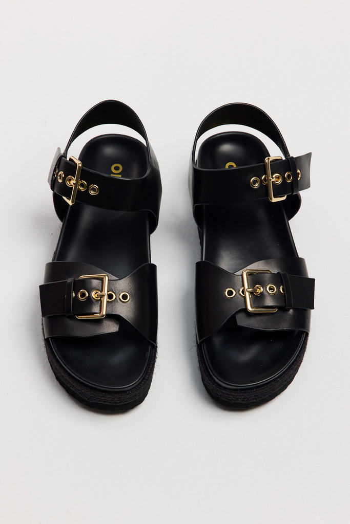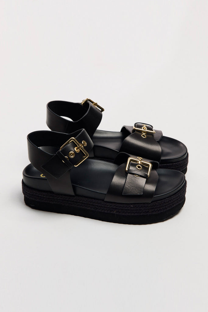 Featuring a treaded platform sole with rope-wrapped detailing and a moulded leather footbed made to cradle the foot in comfort. Adjustable leather buckle straps and contemporary eyelet details give it just the right amount of edge.