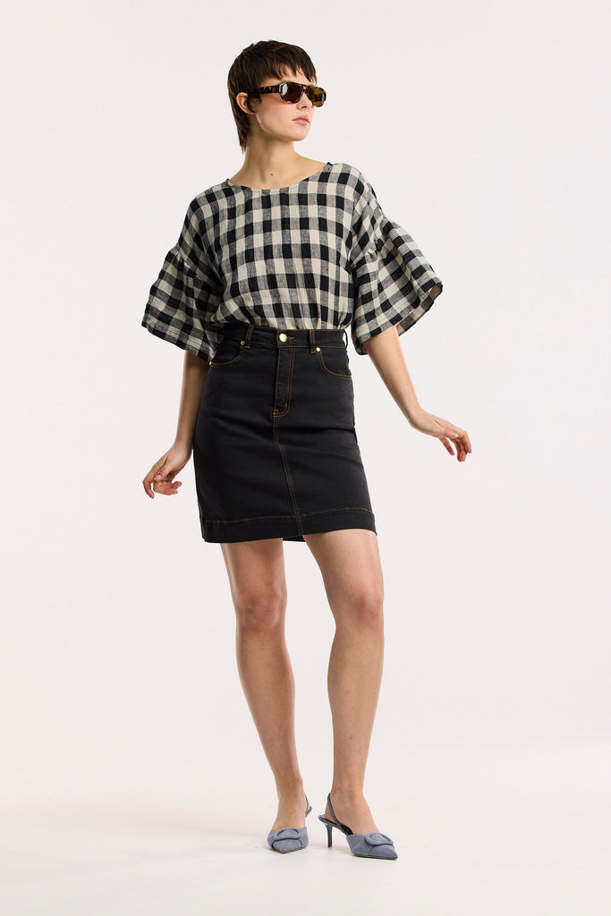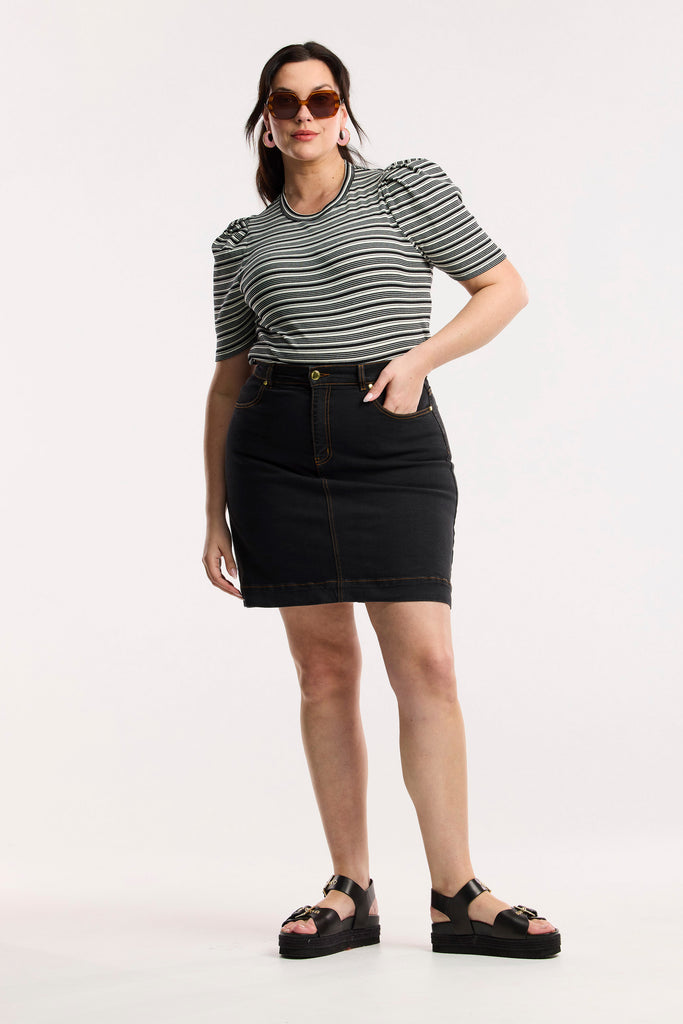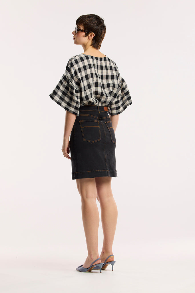 Switch up your skirt game with COMPANION SKIRT. A modern length classic silhouette, in soft yet sturdy organic cotton with just the right amount of stretch. Style with your favourite blouse, or dress is down with a fitted Traveller Top.