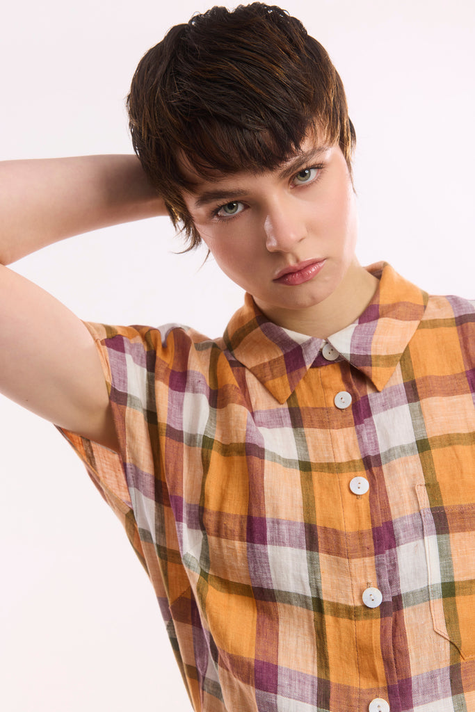 The cap sleeve silhouette flatters every frame, while the relaxed fit makes it easy to wear without ever feeling fussy. Cut from premium 100% linen in amber, banksia and soft cream check, its texture is both feather-light and enduringly luxe.