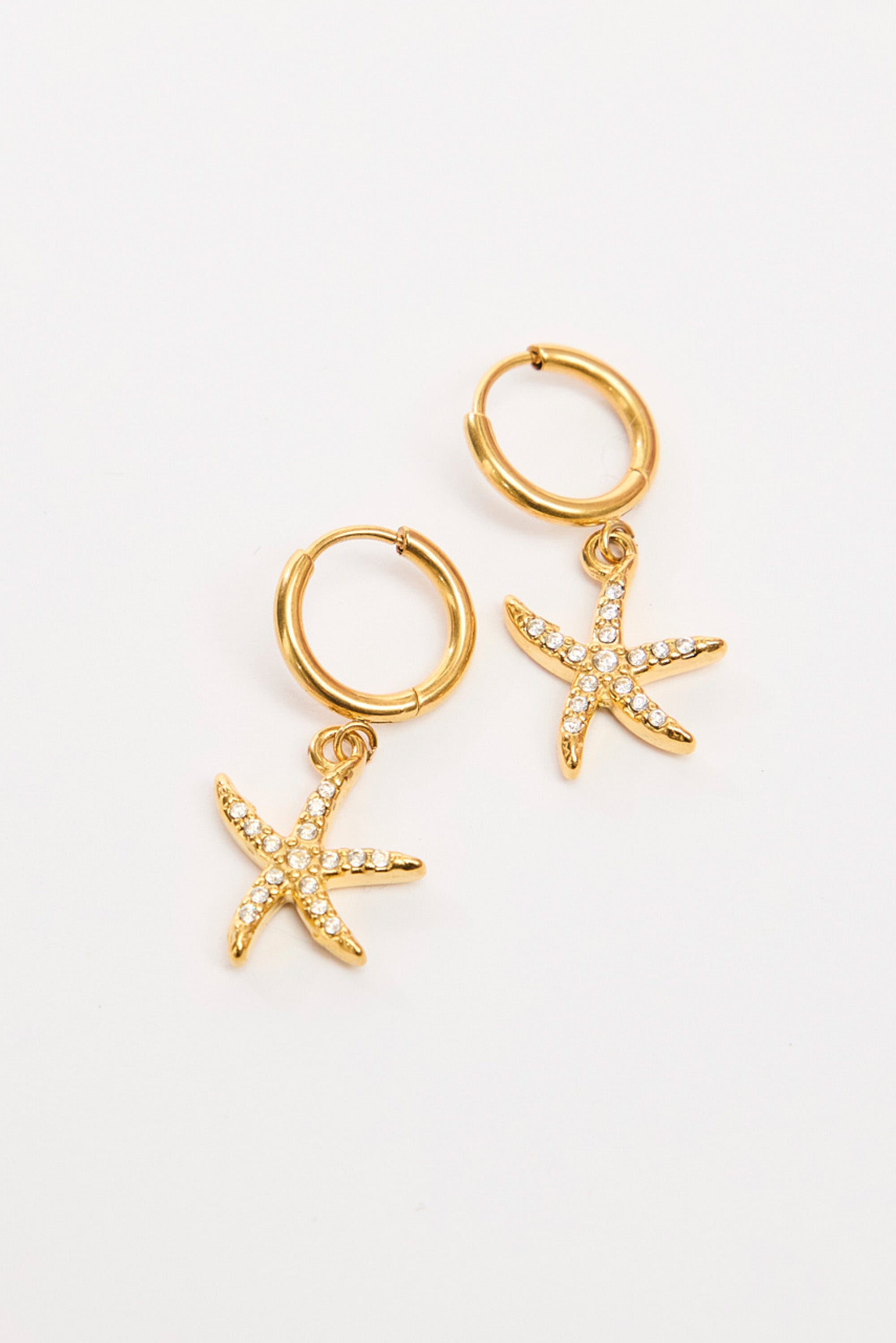 Make waves with Beachcomber Huggie Earrings, refined enough to wear anywhere. These gold hoops dare to celebrate the ocean's magic with a striking starfish charm crowned in glittering cubic zirconia.