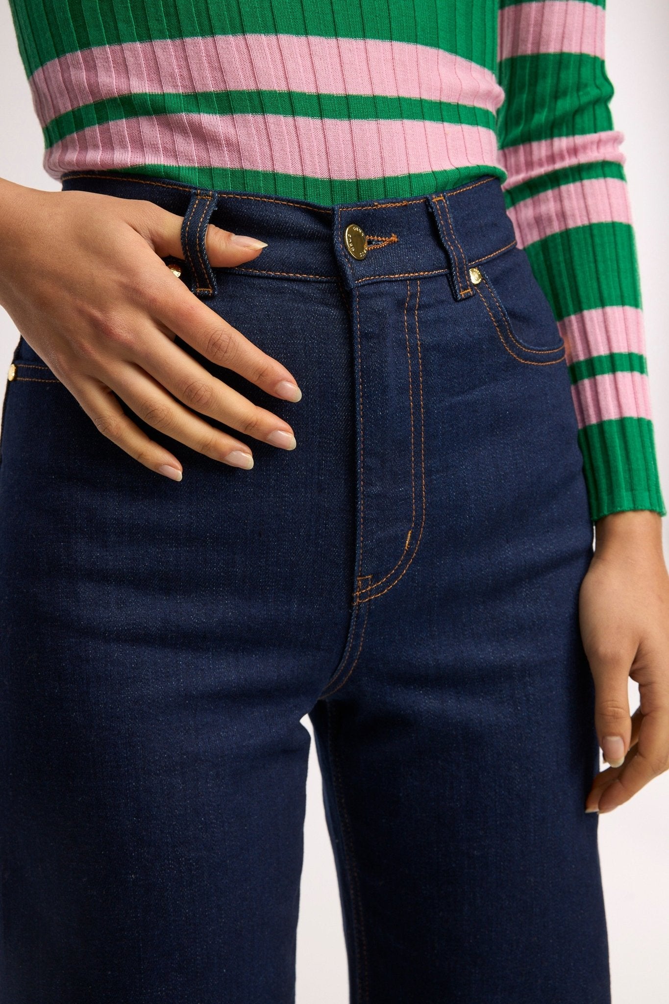 Sleek and sophisticated, COMPANION JEAN will take you from day-to-night with an of the moment wide-leg. Designed to flatter your curves, made from soft yet sturdy organic cotton in versatile Dark Indigo. Your new companion for the season, ready to pair with your favourite blouse or knit.