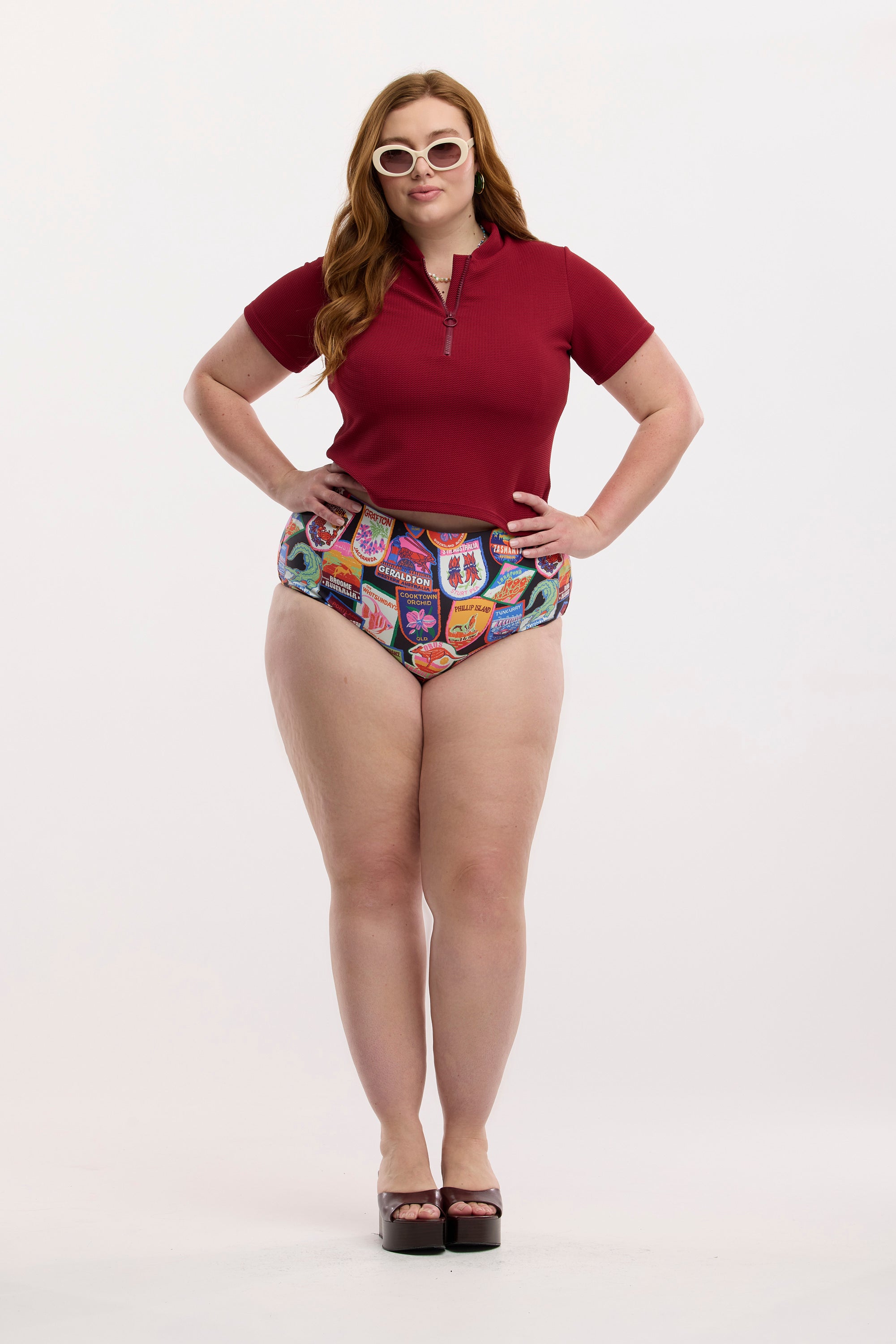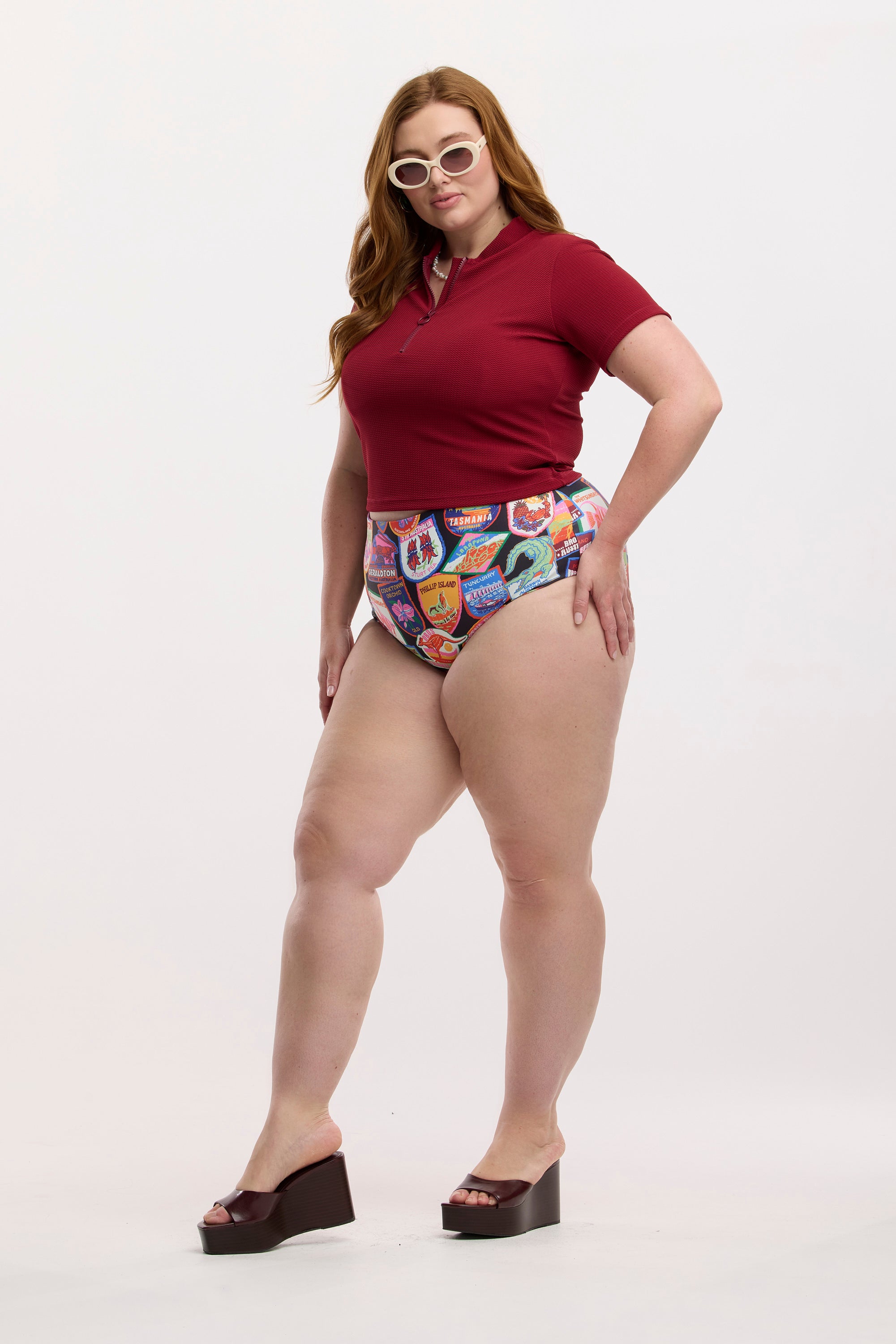 Cut in a sleek neat fit with a luxe textured bold burgandy, it moves with the body rather than clings. The new short sleeve length gives just the right amount of coverage for surfers, swimmers or leisurely ocean-floaters alike.