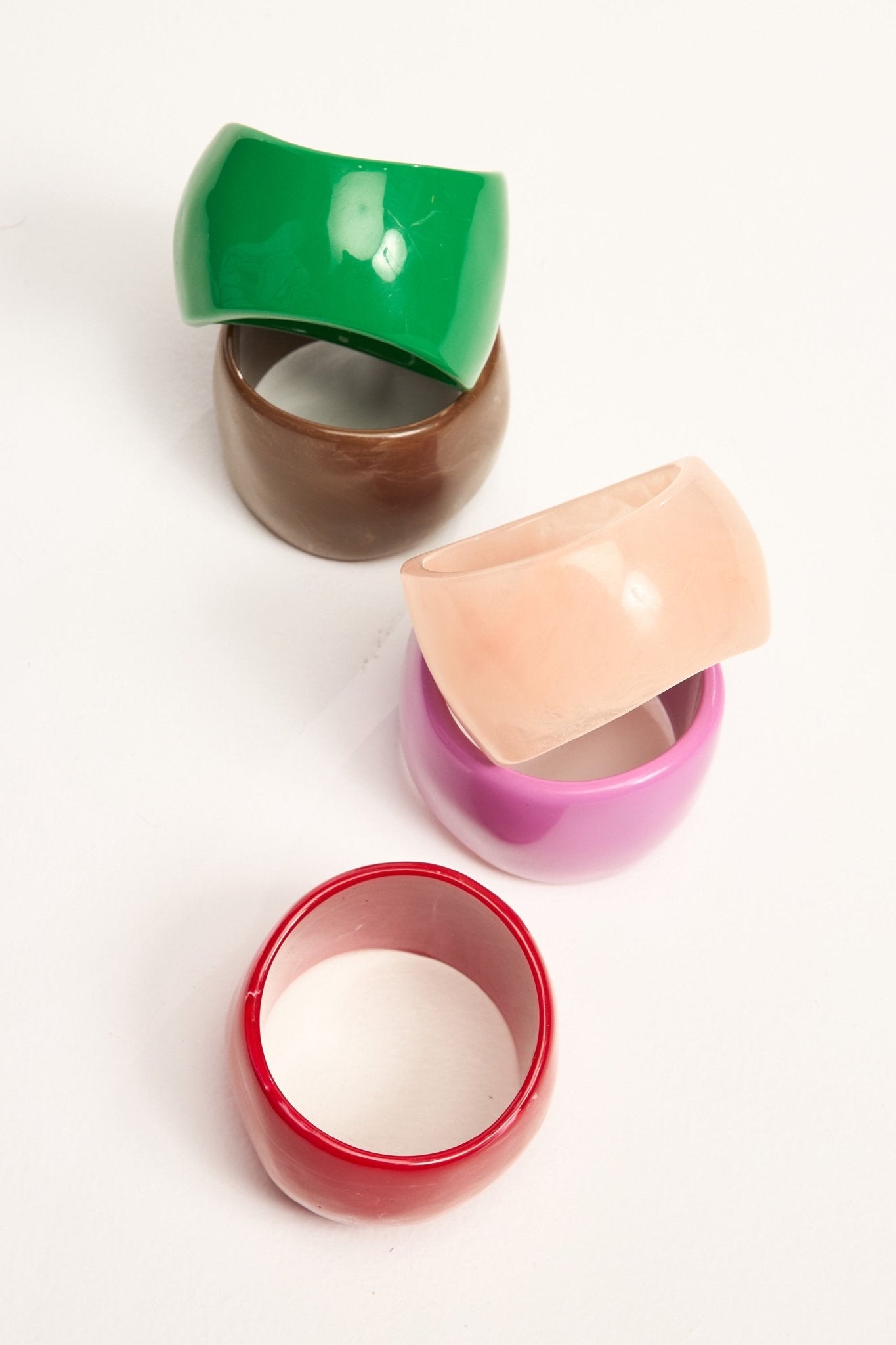 Our Epiphany Bangle is a chunky yet smooth adornment, cast in resin to mimic the gentle asymmetry of natural forms.