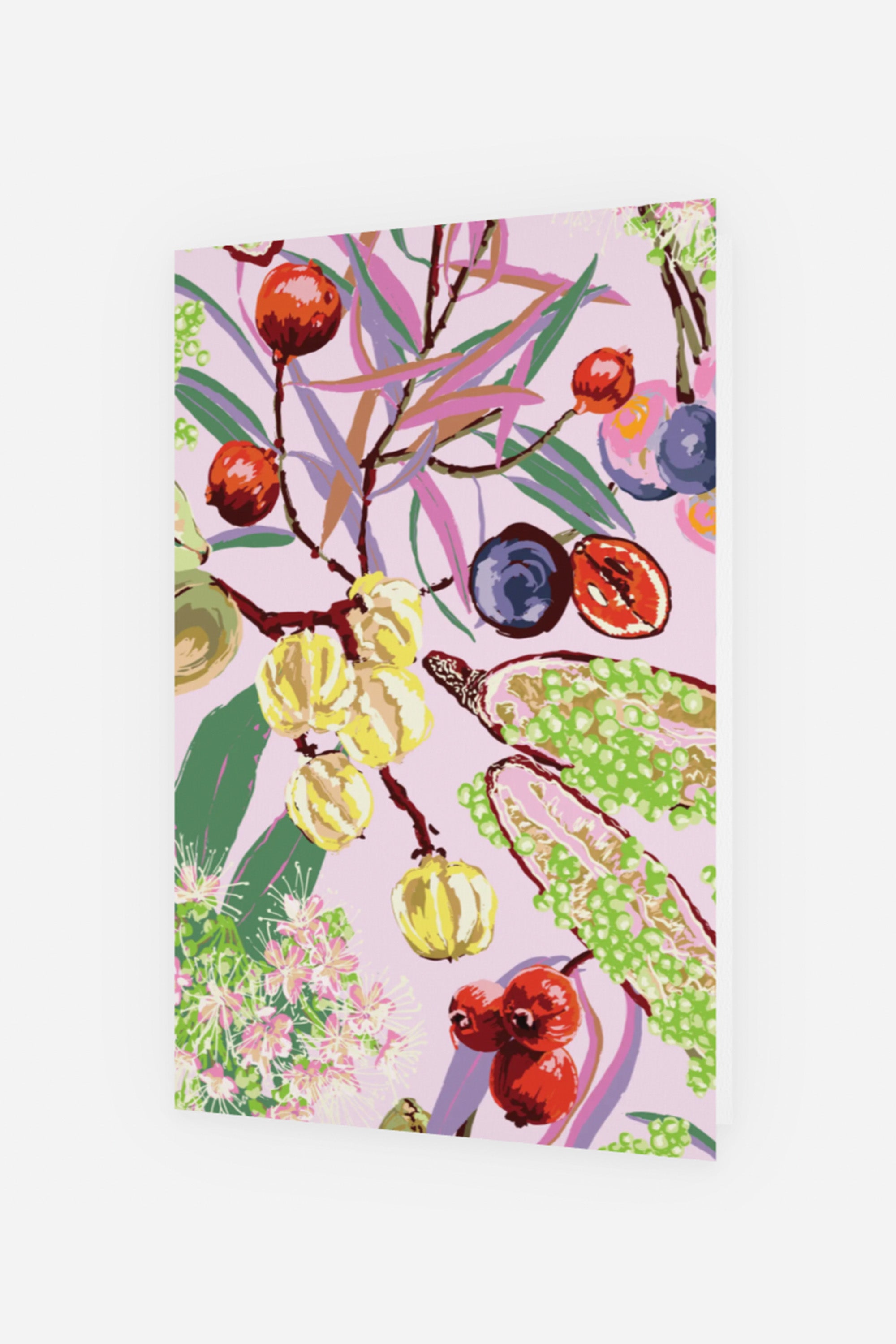 Fresh, festive, and full of flair — the Fruit of the Land Greeting Card bursts with rich colour and joyful detail. Featuring an OBUS original print of hand-drawn native fruits and botanicals, it captures the abundance and vibrancy of the Australian landscape.