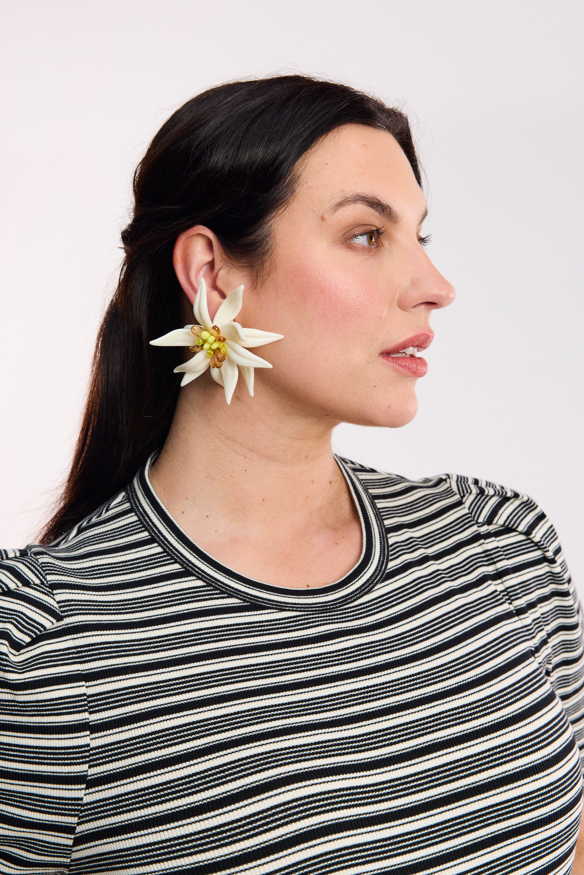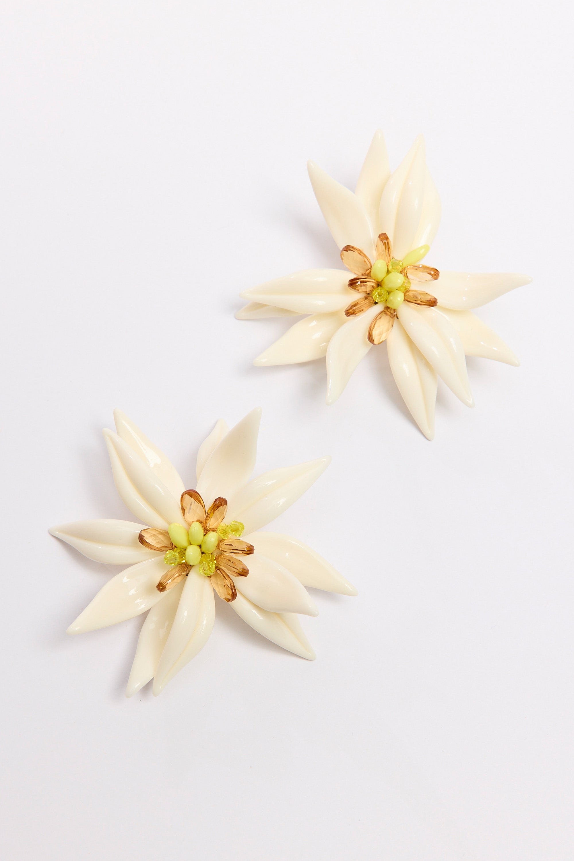 - Statement resin earring in a sculptural floral form