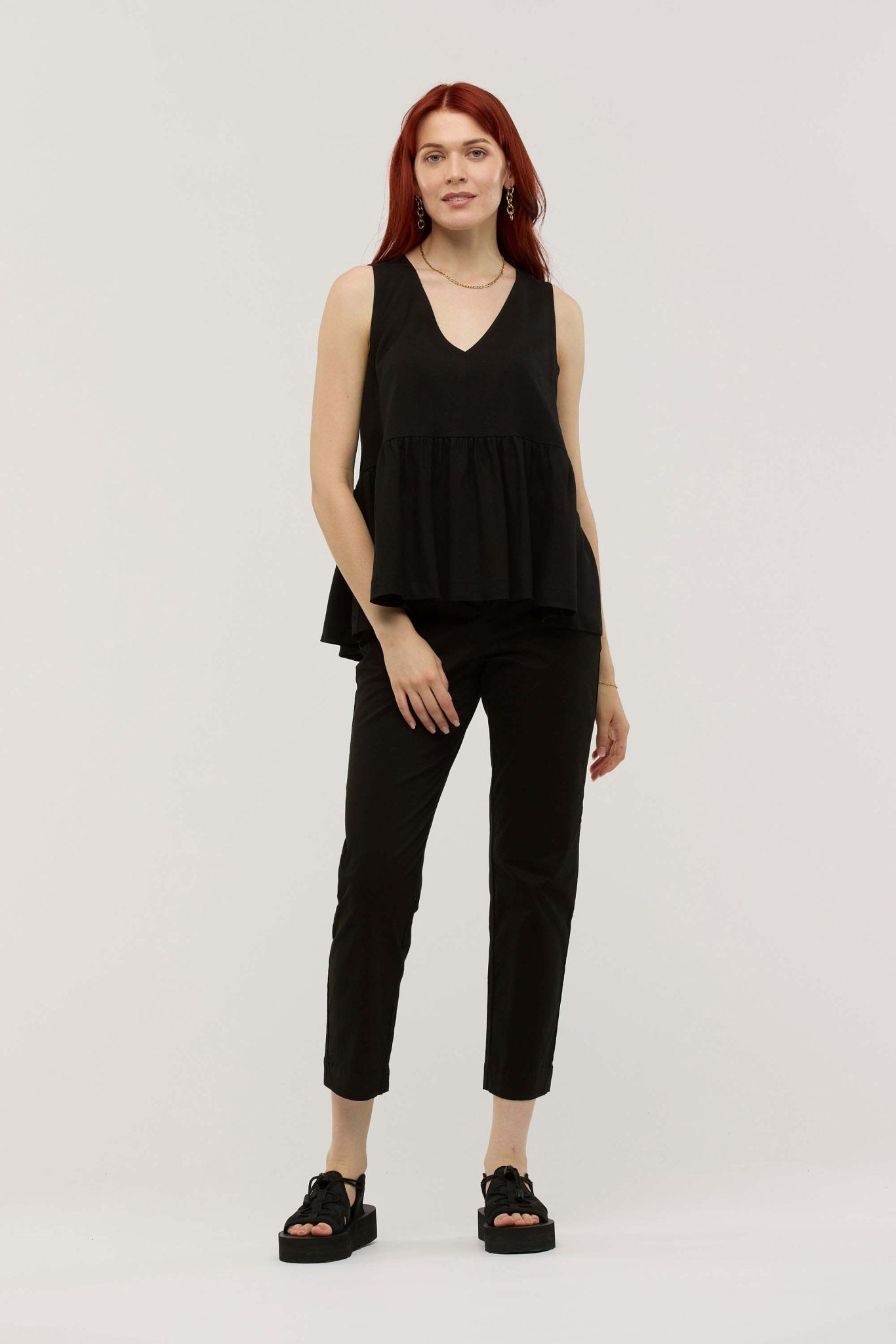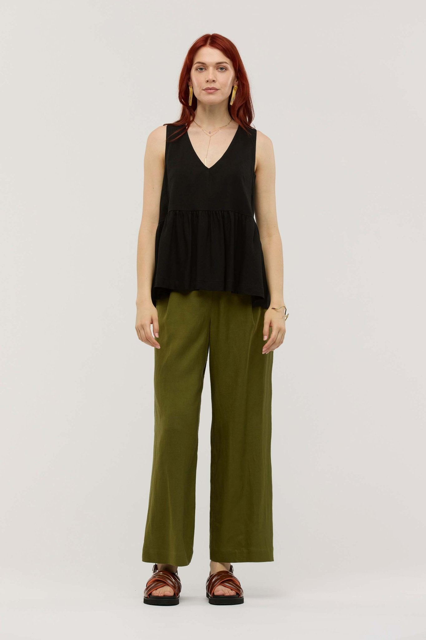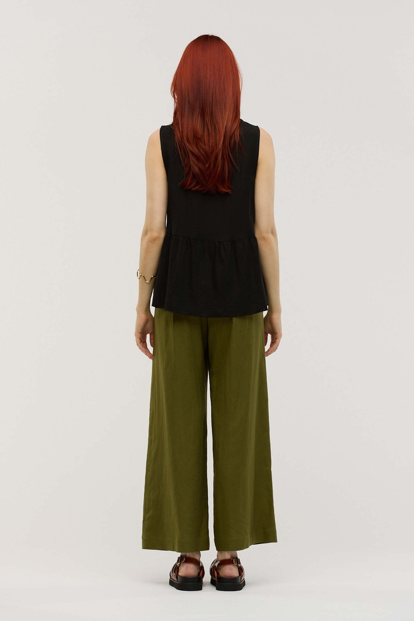 - Sleeveless top with gathered swing silhouette