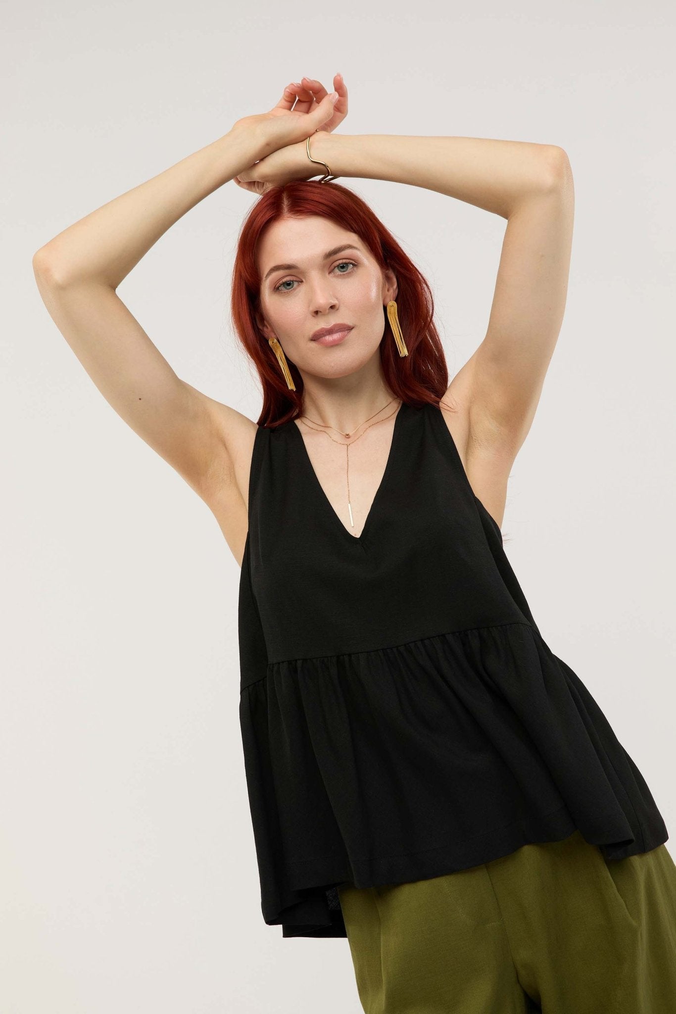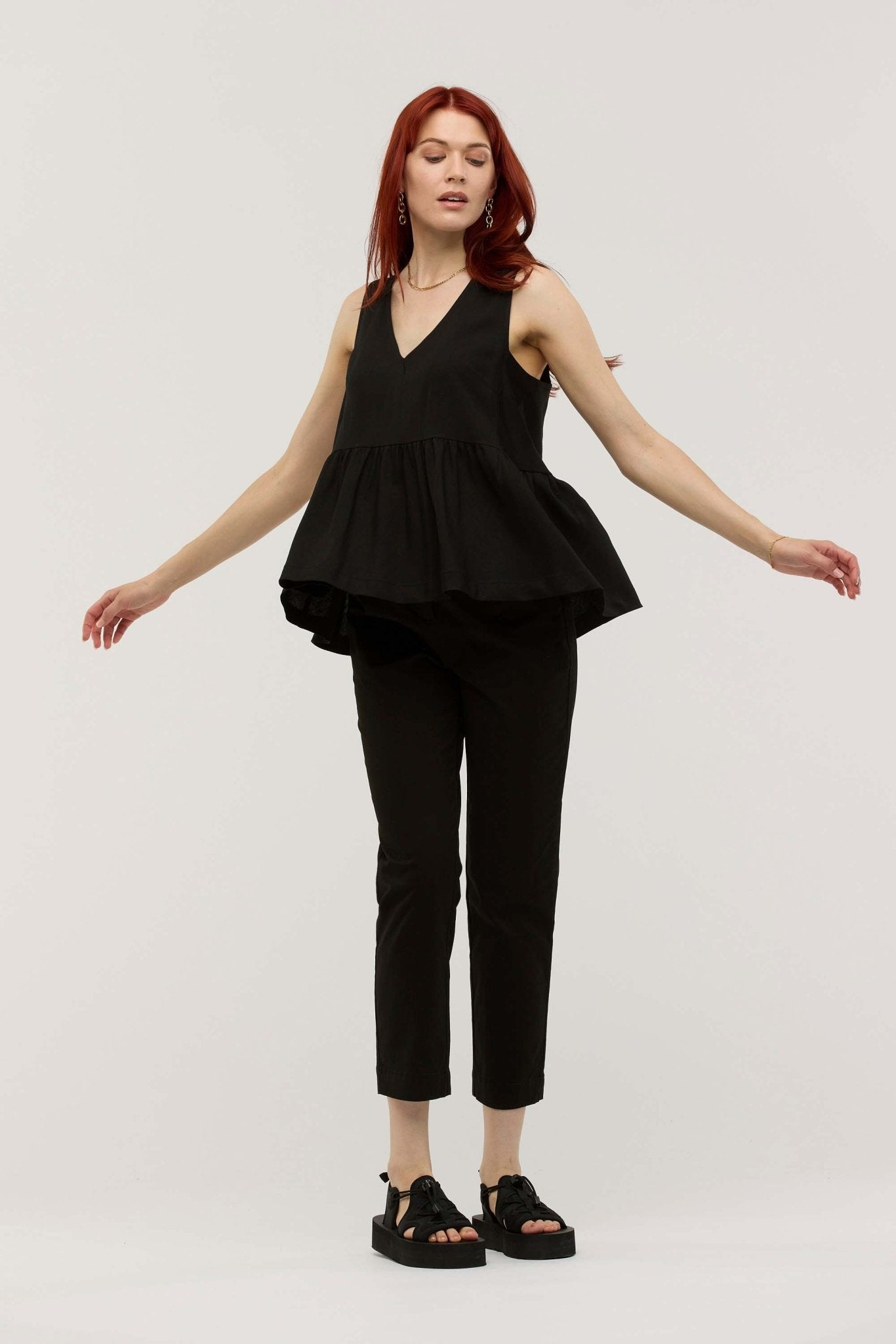A classic v-neckline and floaty, swinging volume combine in perfect balance in the PERSEVERANCE SWING TOP. Effortlessly chic, a contemporary, considered fit, and versatile through the transeasonal months as a layering piece.