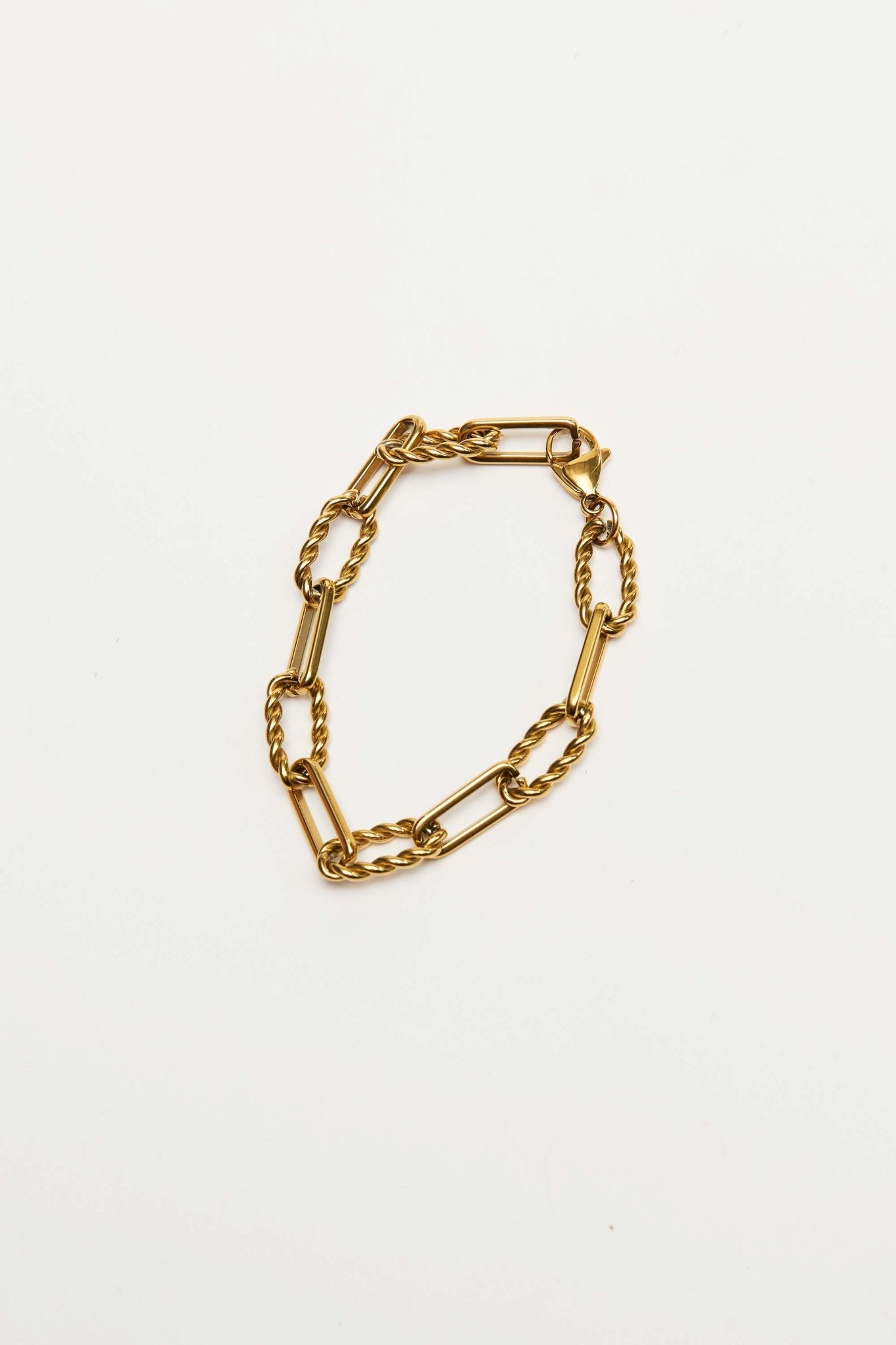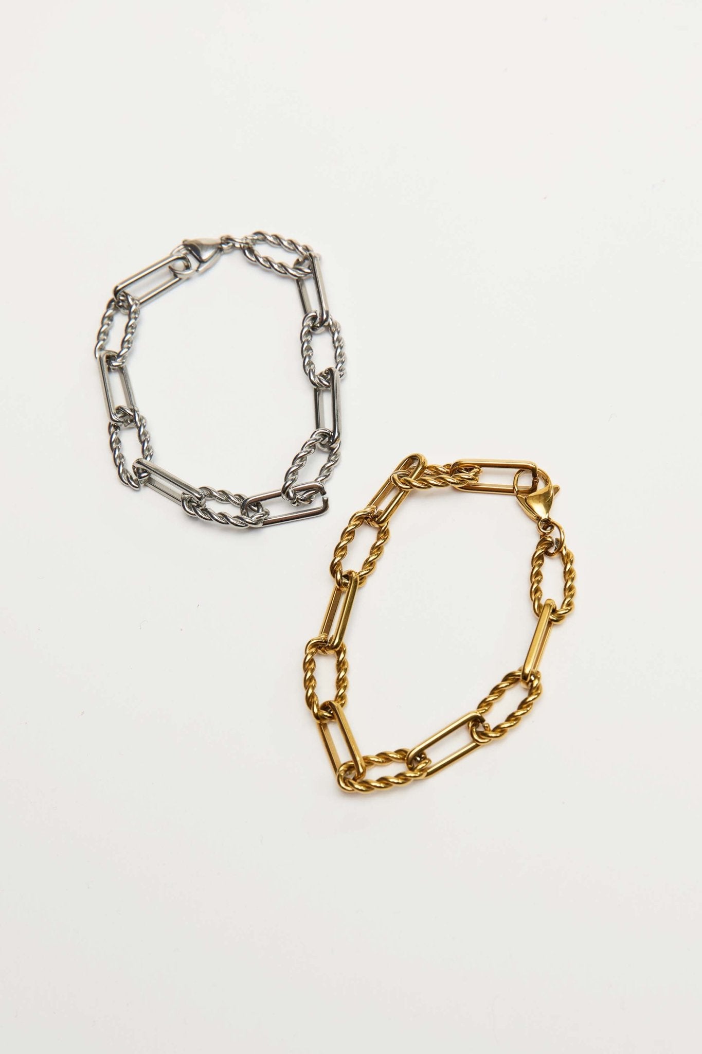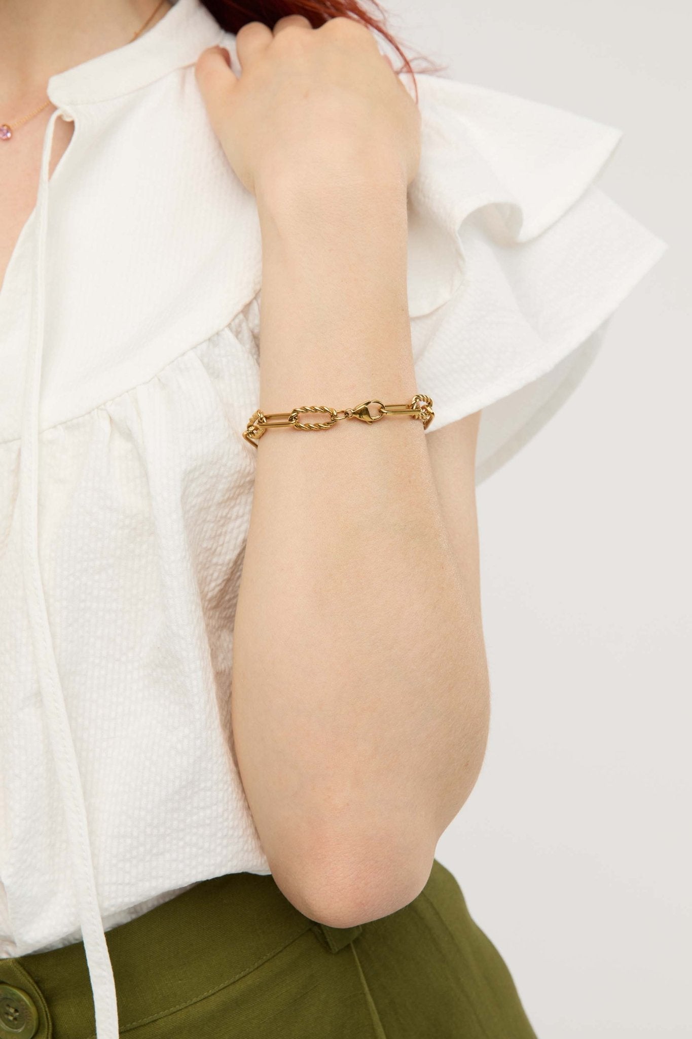 Featuring alternating twisted + smooth links in 18K gold plating.