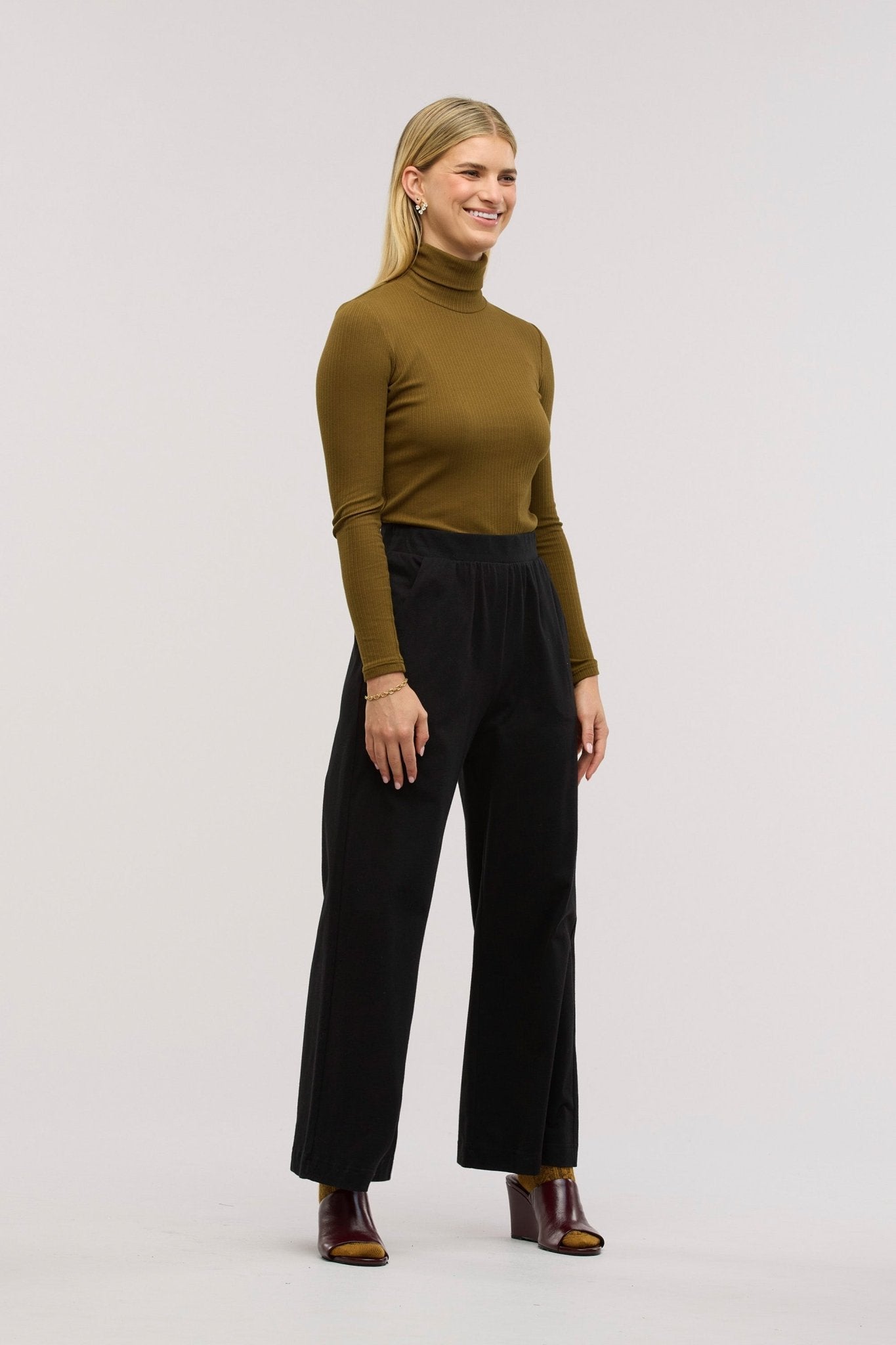 The TRAVELLER RIB ROLL NECK is a winter essential made for layering, lounging, and stepping out in style. A close-fitting silhouette that skims the body, this classic roll neck adds warmth without bulk—perfect for sharp mornings and desk-to-dinner dressing.