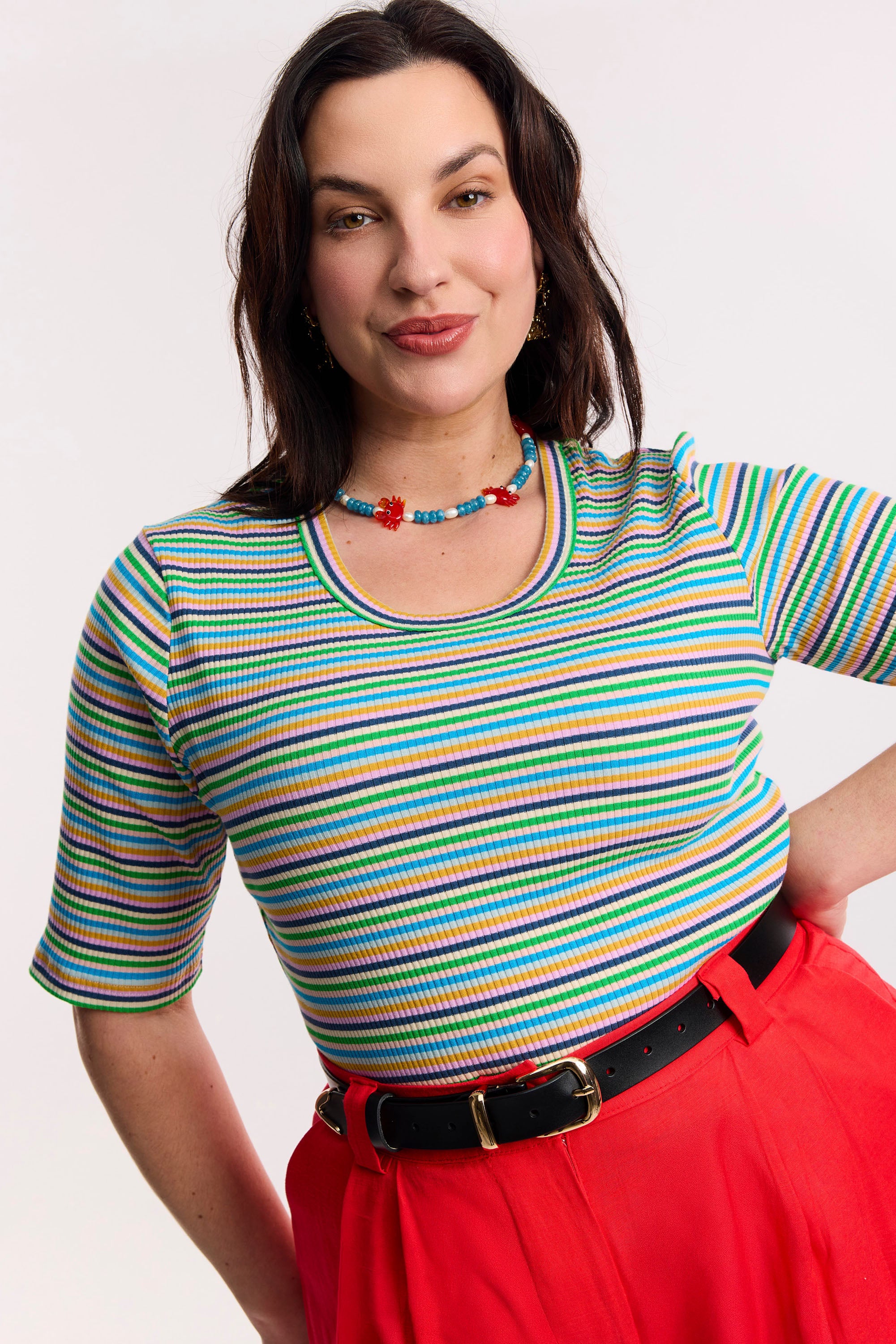 A playful splash of summer colour designed to brighten every wardrobe, the Traveller Rib Tee is an OBUS best seller.