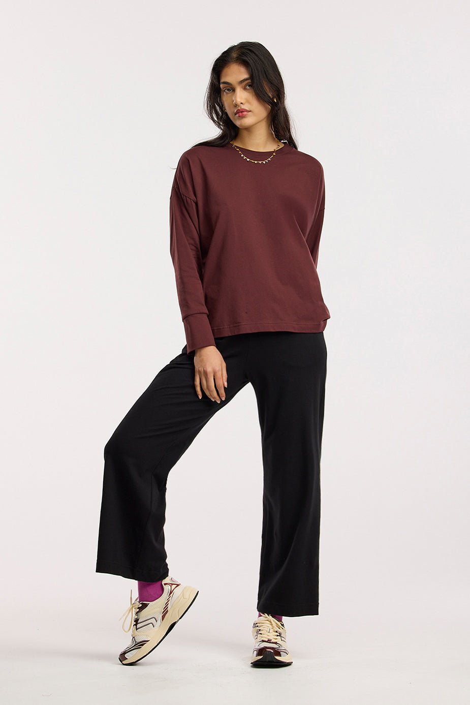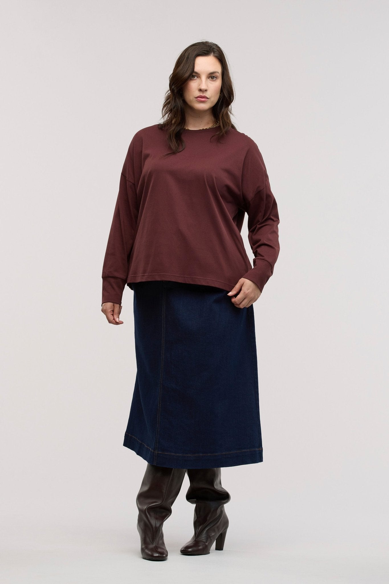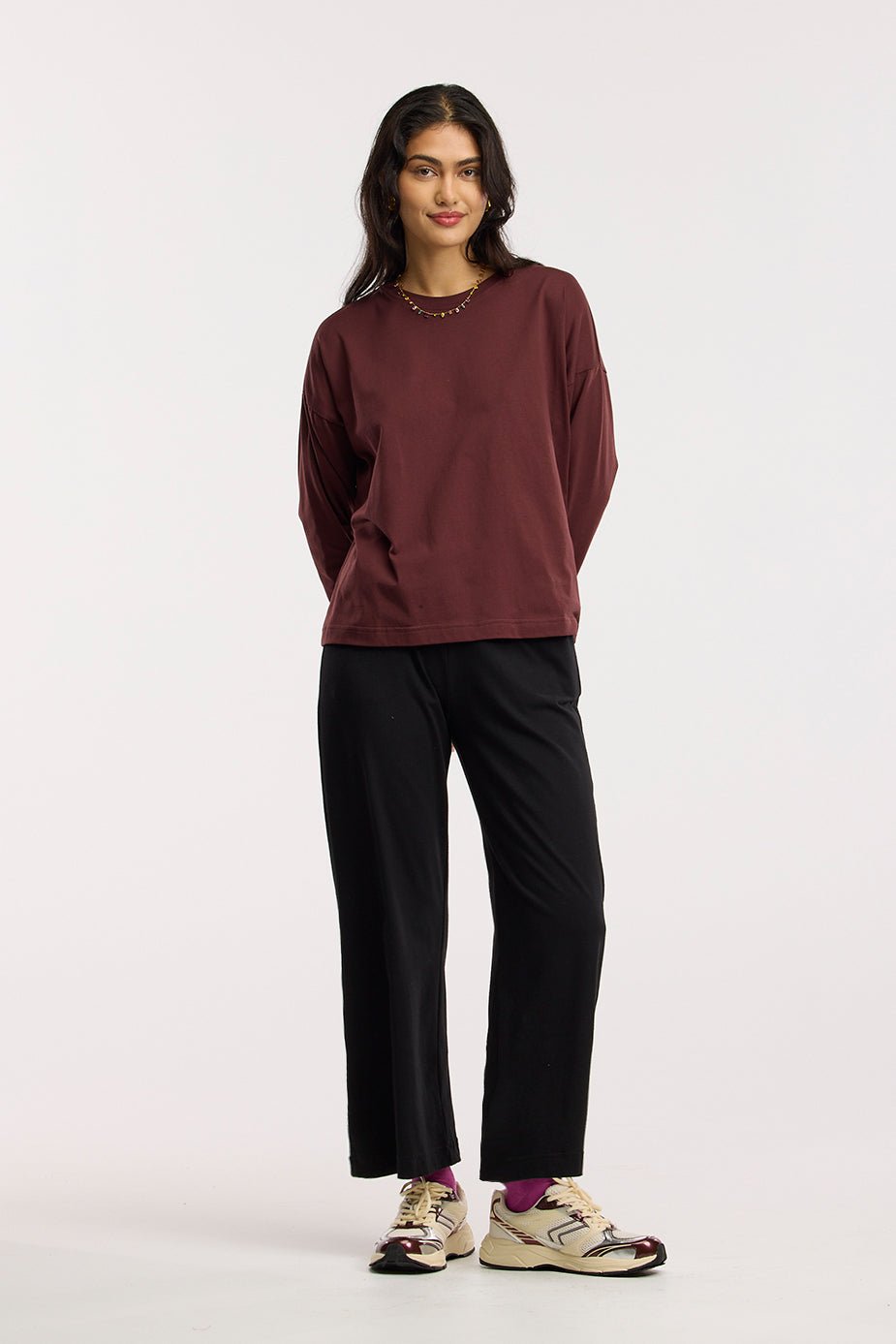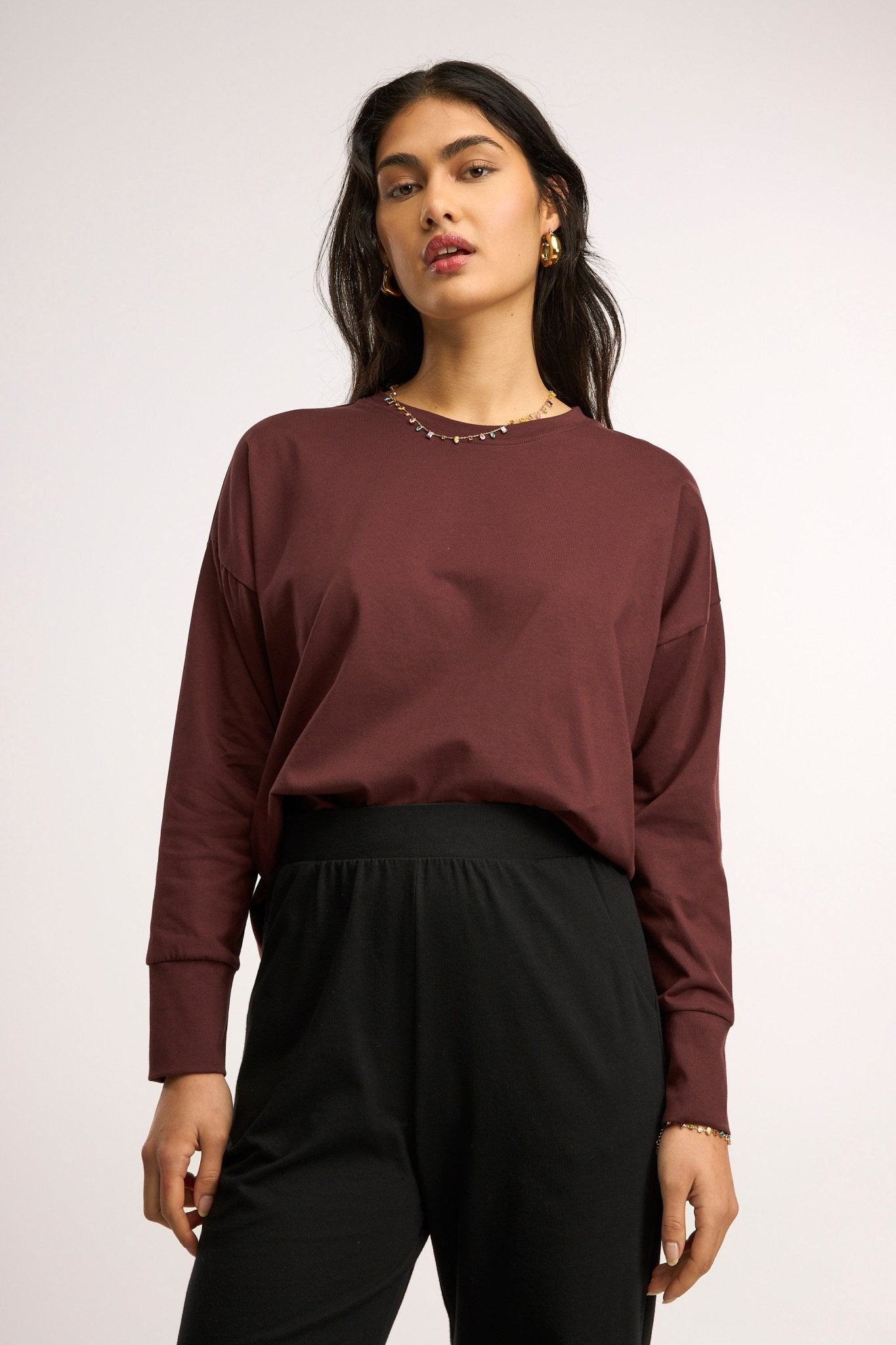 A timeless staple, crafted from a luxurious, polished cotton jersey, meet the TRAVELLER TOP. Coming in two rich seasonal colours, designed to be endlessly versatile for winter styling.